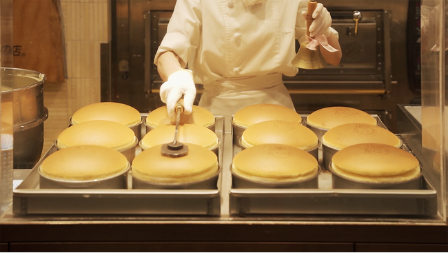 ベルの音が聞こえたら、焼きたてが並ぶ合図です。朝の10時から随時、1度に12個ずつ、デンマーク産のクリームチーズをたっぷり使ったふわふわチーズケーキが焼きあがります。ほわっと湯気とともにほおばるとシュワシュワの口どけです。