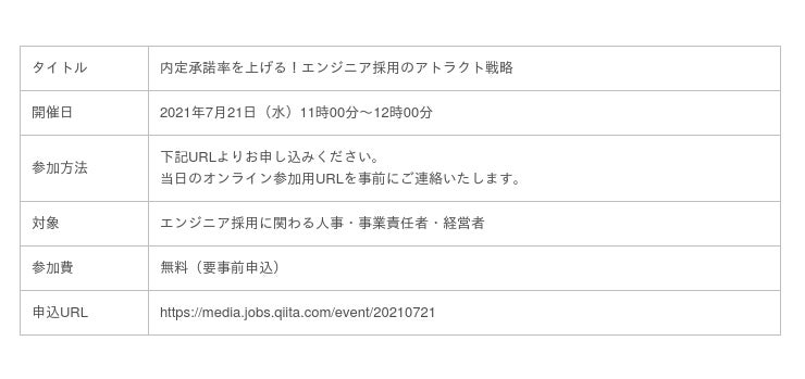 株式会社エイチームのグループ会社であるIncrements株式会社(本社:東京都港区、代表取締役社長:柴田健介)は、採用担当者向けに「エンジニアを惹き付けるための基礎知識」資料を無料で公開し、詳細についての解説セミナーを2021年7月21日(水)に開催します。
