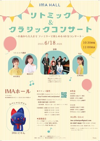 『リトミック&クラシックコンサート』が2023年6月8日(日)にIMAホール(東京都練馬区)にて開催されます。