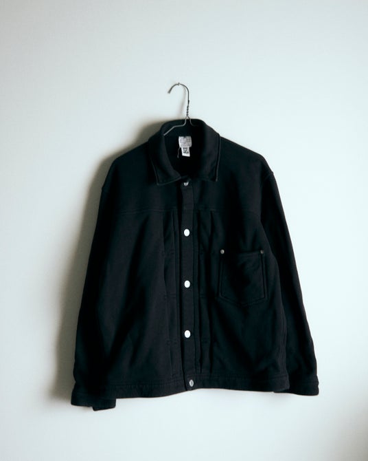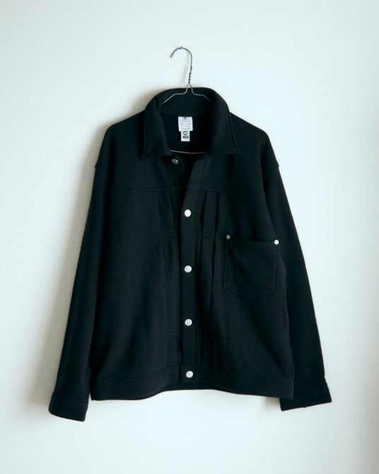 吊り編み素材の柔らかさと、ジャケットの最大の特徴である胸のタックデザインまで見事に再現された、クオリティーの高い逸品は吊り編み特有の柔らかさも最大限に感じられます。