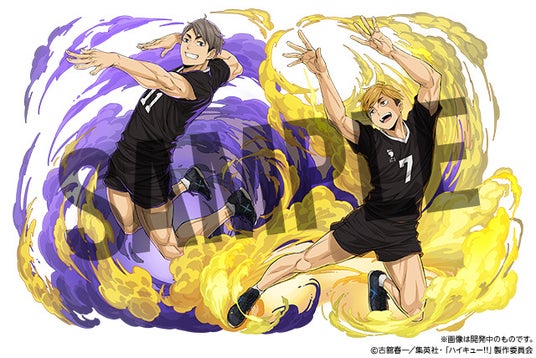 音駒高校の「黒尾 鉄朗」「孤爪 研磨」、稲荷崎高校の「宮 侑」「宮 治」などの人気キャラクターたちがコラボガチャやダンジョンに登場します。