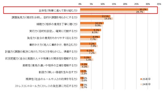 ・インターンシップや就活準備を通じて成長したと感じるのは 「主体性(物事に進んで取り組む力)」が最多【図3、4】