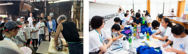 1日目、子どもたちは、5人ずつの班に分かれ、各班のキャップとともにこども記者として取材にあたります。