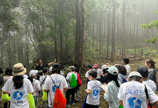 2日目は、なんと朝から雨。子どもたちは、尾鷲の雨量の多さを身をもって感じました。前日は、海と川の役割について体験取材を通して学んだため、この日は山の取材からスタート。尾鷲市九鬼町の「みんなの森」で、尾鷲市の水産農林課の職員の方から、山の整備と海の環境の関係性について話を聞きました。ここで伝えられたワードが、「海と山は恋人」ということ。この尾鷲の森林は、日本独自に設けている保安林の区分「魚つき保安林」に指定され、大切に保護・管理され、森林の栄養分が海に届き、海の豊かな環境と生物の繁殖を支えていることを学びました。