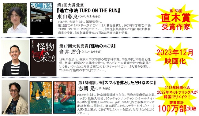 受賞者のインタビューも可能ですので、ぜひご検討いただけますと幸いです。『このミステリーがすごい!』大賞