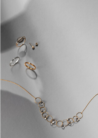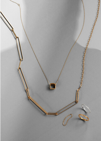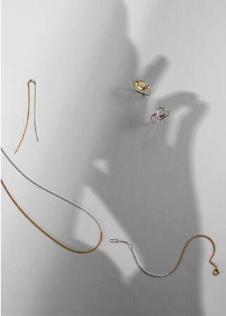 軽やかなベネチアンチェーンやピンクアメシスト・シトリンを使ったジュエリーで時代の先取りを。
