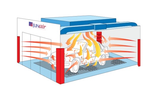 本製品は、既存の塗装ブースに設置するだけで、ブースを増設したかのような処理能力を発揮する乾燥補助ユニットです。乾燥時間の短縮(最大30%)とエネルギーコスト削減(最大40%)を実現し、作業の生産性を高めつつ、新しい環境基準にも適応。工場スペースの制約を抱える整備業者や、納期短縮・コスト削減を目指す企業に最適な選択肢です。