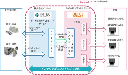 インテックは、「HULFT Square」の提供だけでなく、インテックが提供する「データ連携プラットフォームサービス」を「HULFT Square」と連携して提供することが可能になります。