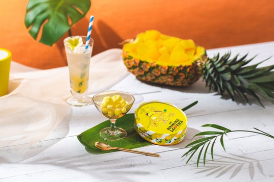 生ラムネ<ゴールデンパイン>810円 ※阪急うめだ本店先行販売 芳香で香り高いゴールデンパインの甘い果汁が滴るような、夏にぴったりの生ラムネ。パイナップル本来の甘酸っぱさを追求するため、余計なものは何も加えずに、ジューシーな素材そのままをシンプルに表現。