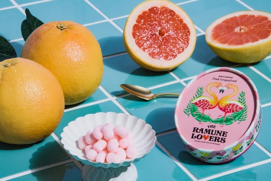 生ラムネ<ピンクグレープフルーツ>810円 一般的なグレープフルーツよりも酸味と渋みがマイルドなピンクグレープフルーツ。丸みがありつつも爽快感あふれるジューシーな味わいに仕上げました。
