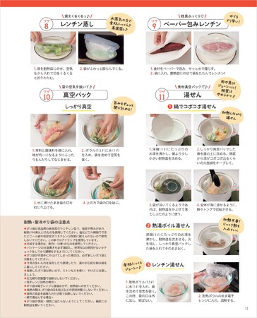 粉ものを混ぜる、食材を調味液に漬け込むだけと思っていませんか? 耐熱・耐冷ポリ袋は、電子レンジにそのまま入れての加熱が可能。ごはんを炊く、野菜を蒸す、真空状態にしてボイルするなど、袋1つで幅広い調理ができます。