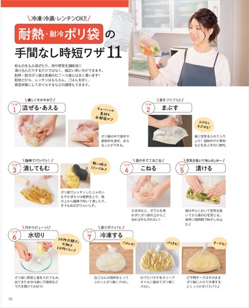 Akkaさんのレシピに欠かせないのが耐熱・耐冷のポリ袋です。冷凍、冷蔵、レンチン、ボイルもOK。ゆでる、つぶす、混ぜるの工程が袋1つでできるポテトサラダや、袋の中で混ぜて電子レンジで加熱するだけのふわふわだし巻き、炒めないパラパラチャーハンなど、驚きの工程で料理を作ることができます。簡単に調理できるのはもちろん、時短が叶い、洗い物が減るのも大きなメリット。失敗も少なく、美味しい料理を作ることができます。本誌には、AkkaさんのInstagramで人気のベストレシピから様々なレシピを収録しました。レシピ数は大ボリュームの308品となっており、日々の献立を考える際に活躍すること間違いなしの一冊です。