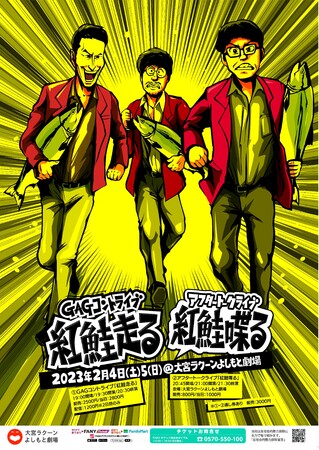 また、本ツーマンライブの情報解禁の場となった、本日2月4日(土)、2月5日(日)に大宮ラクーンよしもと劇場にて開催中の「GAGコントライブ『紅鮭走る』」は会場チケットは好評につき両日ともに完売、明日2月5日(日)のみオンライン配信もありますので、ご自宅でもお楽しみいただけます。配信チケットはFANYオンラインチケットにて現在も販売中です。