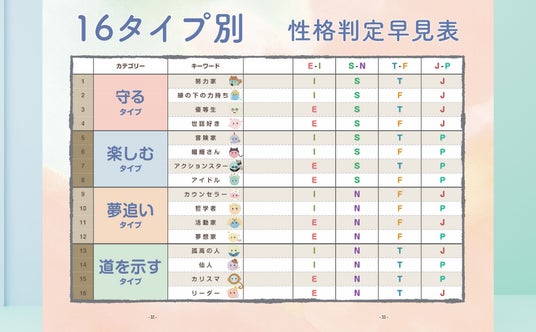 本書の特徴は、16タイプの性格だけではなく、人間関係や価値観までを深堀りします。「〇〇〇〇タイプと仲良くなる方法は?」「〇〇〇〇タイプのお悩みは?」それに対する、アドバイスまで。16タイプ別の特徴を知ったら、周りの人や自分ともっと仲良くなれるはず。