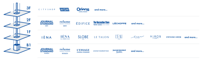 “衣食住美を通じて人生の楽しみを提供”をパーパスにJOURNAL STANDARD、IÉNA、 ÉDIFICEをはじめとしたファッションブランドと、フード、ファニチャー、フィットネスといったカテゴリーで様々な ブランドをプロデュースする“ベイクルーズ”が自社としての新しいコンセプトを掲げ運営する大型グルーピングストアです。
