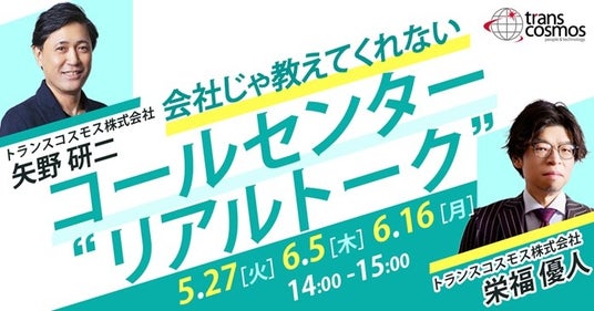 トランスコスモスは、オンラインセミナー会社じゃ教えてくれないコールセンター“リアルトーク”を5月27日(火)、6月5日(木)、6月16日(月)に開催します。