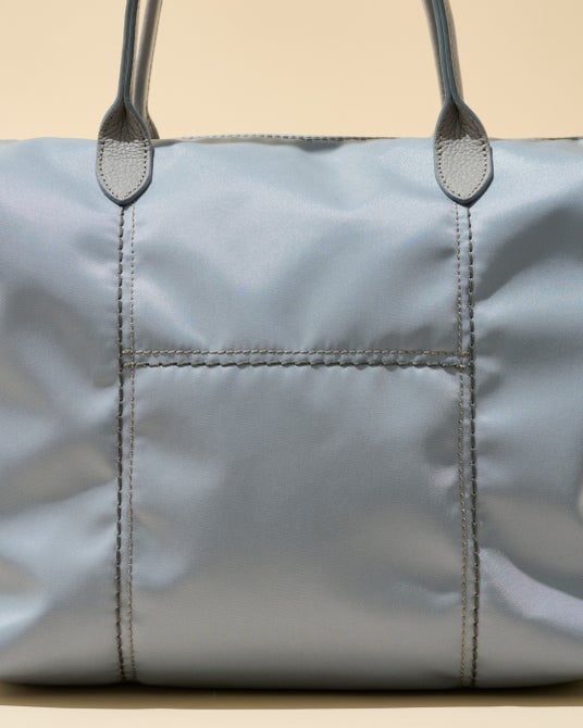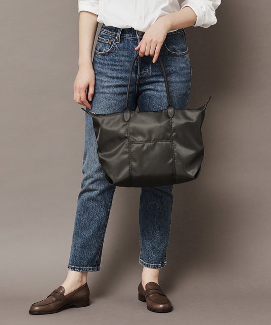 その軽さの秘密でもある、世界的なメゾンブランドでも採用される高密度ナイロン素材は、上品な光沢感と優れた耐久性を誇ります。