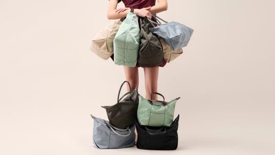 コンパクトな見た目ながら、A5サイズの手帳などが収納できるSサイズと、PCや着替えなどを余裕をもって収納できるLサイズの2サイズ展開です。どちらのサイズも折り畳むとコンパクトになるのが、このシリーズならではの嬉しいポイント。平たく畳んでスーツケースに忍ばせれば、旅先や出張先でのサブバッグとして活躍します。さらに、クローゼットでの収納時も場所を取らず、すっきりと整理することが可能です。