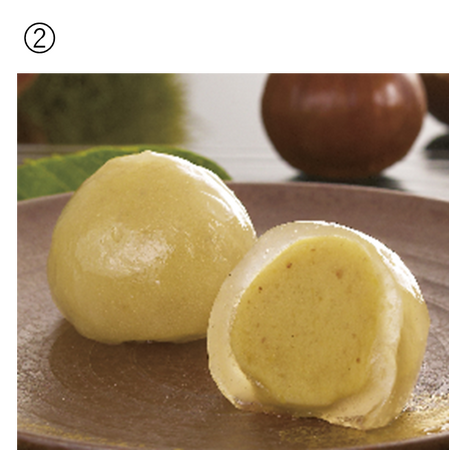 2.中津川栗きんとんを葛で包み込みました。栗本来の風味ともっちりとした葛の食感、冷やしても美味しくお召し上がりいただけます。