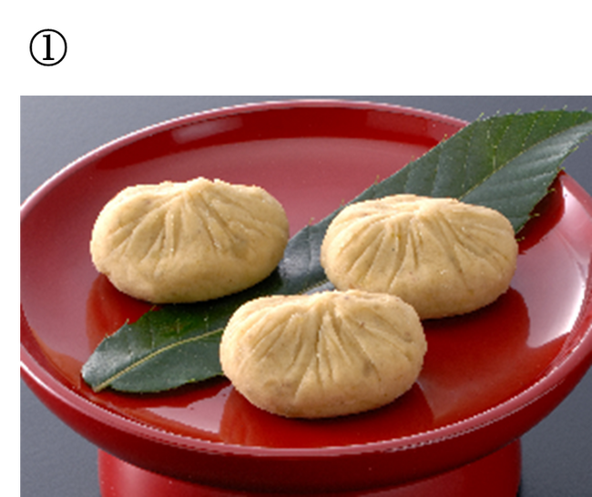 〈松月堂〉1.栗きんとん 6個入 1,868円 10個入 3,056円 2.栗苞(くりづつみ) 1個 302円/1階 MAP1.