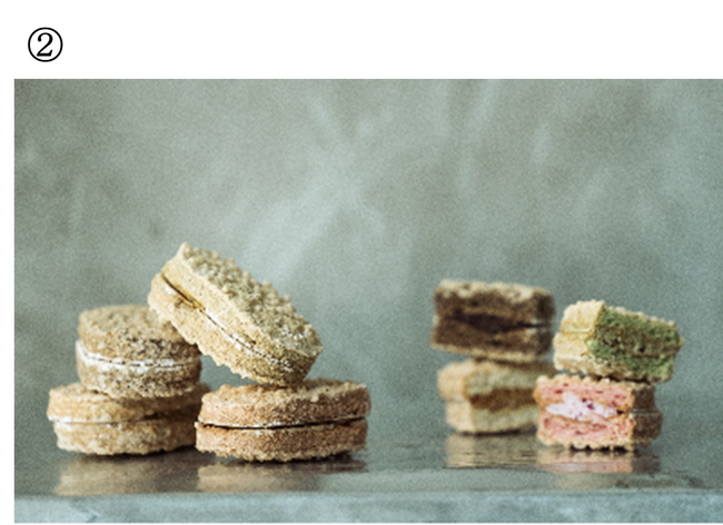2.メレンゲとアーモンドプードルで作るフランス菓子ダックワーズ。生地でクリームをサンドしたしっとり柔らかい食感です。プレーン、チョコレート、ラズベリー、ピスタチオの4つの味をセットに。