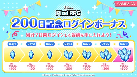 「iOS」および「Android(TM)」端末向けに好評配信中のスマートフォン向けRPG『ディズニー ピクセルRPG』にて、正式サービス開始200日を記念した期間限定のログインボーナスを、2025年4月24日(木)より実施いたします。