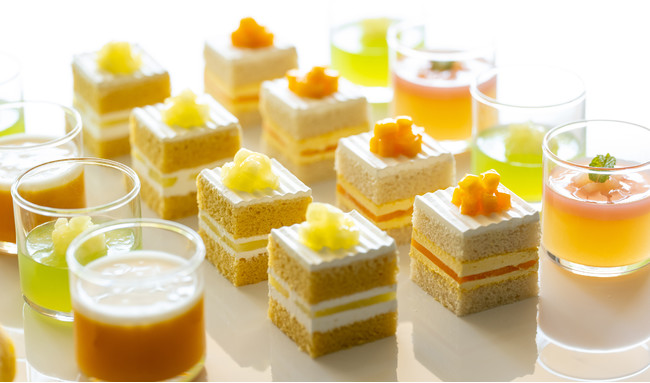テーマは「ピーチ・マンゴー・メロン」。ホテルニューオータニを代表するシグネチャースイーツであり、素材にこだわったプレミアムな『スーパーメロンショートケーキ』や、国産アップルマンゴーを使用した香り高い濃厚なマンゴーの味わいが引き立つ夏季限定『マンゴーショートケーキ』、濃厚なチョコレートがやみつきになる「オペラ レジェール」に、健康志向の「豆乳バスクチーズケーキ」など、さまざまな種類のスイーツがJazzの生演奏とともにお愉しみいただけます。