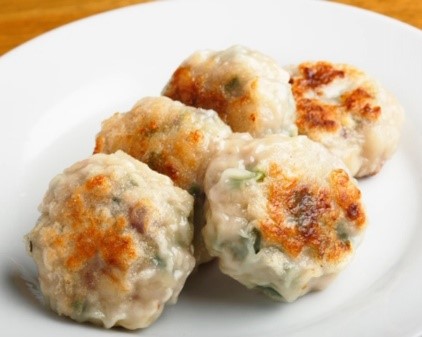 国産の豚肉に海老を入れた手作りのお焼きです。