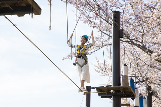 さらに、桜の枝とほぼ同じ高さで木々のあいだを飛び移る空中アスレチック「天狗道場」や、標高370mの山頂にそびえる絶叫吊り橋「風天」、巨大アスレチック「マッスルモンスター」など、桜の中で体験できるアスレチックを多数ご用意しております。このほかにも、桜や桃、レンギョウ、山吹などが彩る景色を楽しめる「ペアリフト」や、桜舞うコースを駆け抜ける「F-1カート」、桜の木の中を通るサイクル型アトラクション「スカイライダー」など、この時期ならではの「絶景お花見アトラクション」が盛りだくさんです。