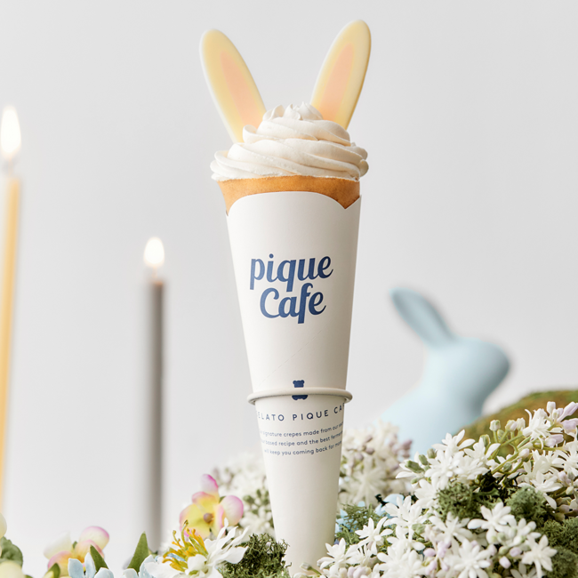 「gelato pique cafe」がイースターパーティーを開催!「USAGI ONLINE」10周年を記念したコラボクレープ、濃厚なチーズケーキや蜂蜜を使用したクレープ、バニラアイスのようなリッチな味わいが楽しめるスムージーをご用意いたしました。