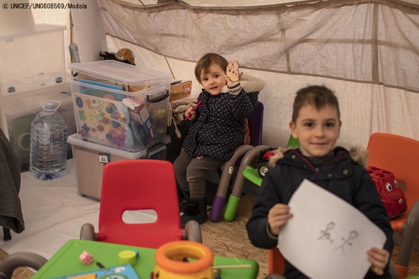 またユニセフは、ウクライナの子どもたちと家族の安全を守るための「ブルー・ドット」という支援拠点を、周辺国の国境付近に設置しています。非常事態の際、幼い子どもは特に人身売買や虐待などのリスクにさらされるため、子ども一人ひとりを登録し、安全な居場所を確保し、必要に応じて保護することが非常に重要です。ブルー・ドットでは、難民の家族への支援として、食料や水の提供、交通手段や宿泊場所を確保するほか、健康チェックも行います。子どもたち用の遊び場もあり、子どもの保護の専門家による心のケア支援も提供しています。