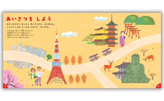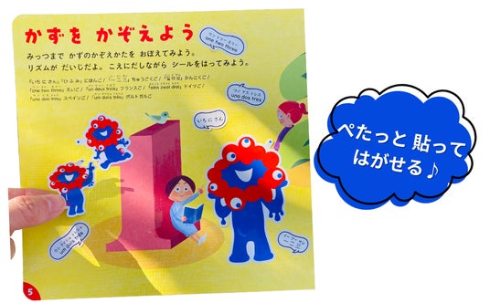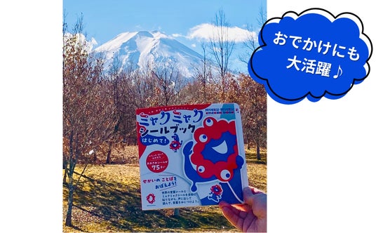 絵本に、ミャクミャク&言葉シールをペタッと貼ったりはがしたりして、遊びながら言葉を覚えましょう。シールは台紙に戻せるので、何度でも遊ぶことができます。シールを貼る場所や向きは自由。お子さんの感覚や想像力にまかせて、楽しく言葉を身につけてください。