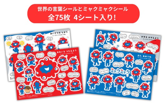 貼ってはがせる「ミャクミャク」シール75枚!(大きめのシール40枚・世界の言葉シール35枚)
