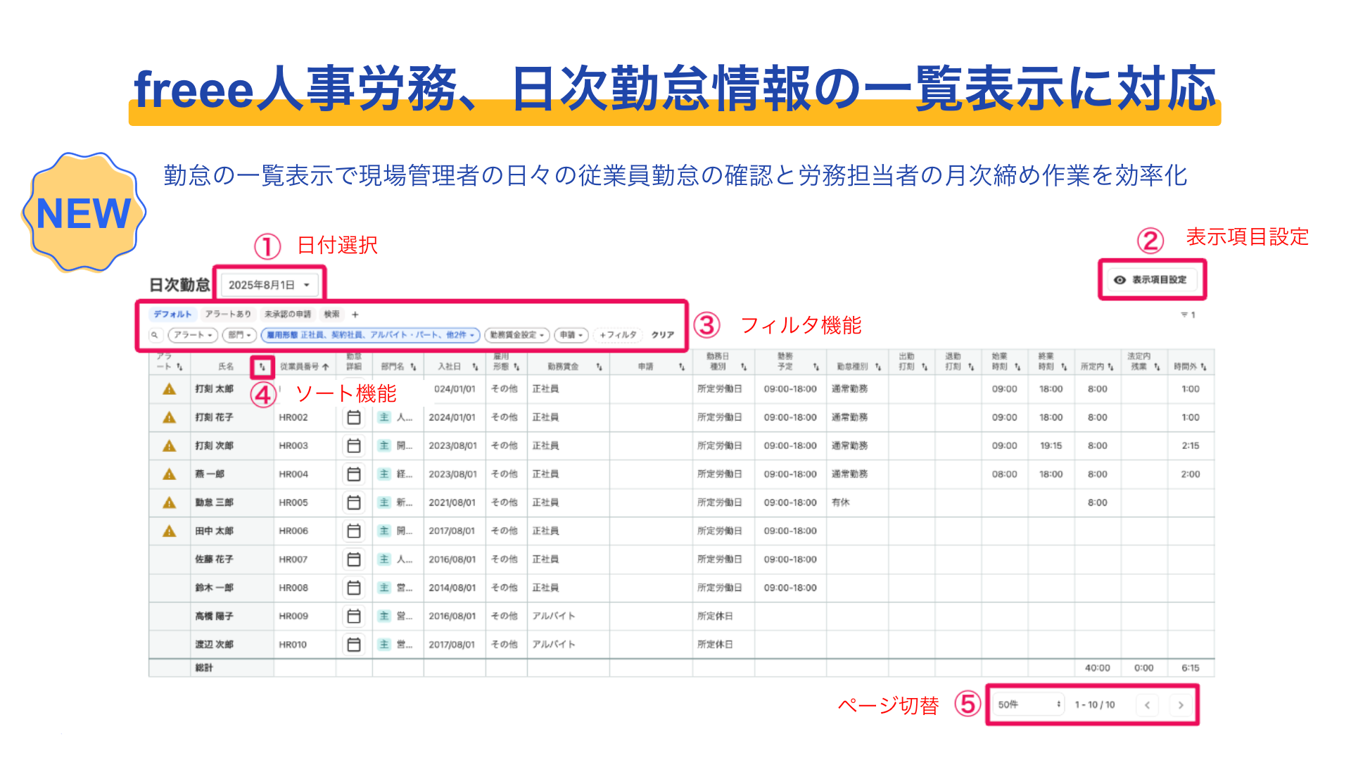 - freee人事労務は、管理者が特定の日付において事業所に所属する従業員情報および勤怠情報を一覧形式で確認できるようになりました