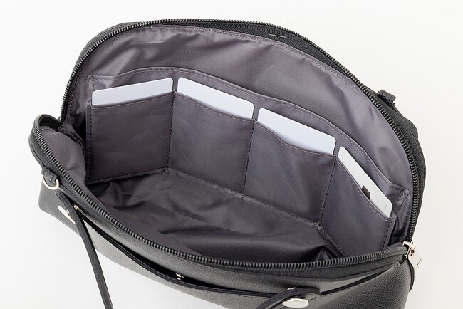 利便性と収納力を重点的に考えた本アイテムは、スマホやリップなどの小物類が整理できる7つのポケットが付いています。コンパクトながらマチつきなので、見た目以上に収納できます。