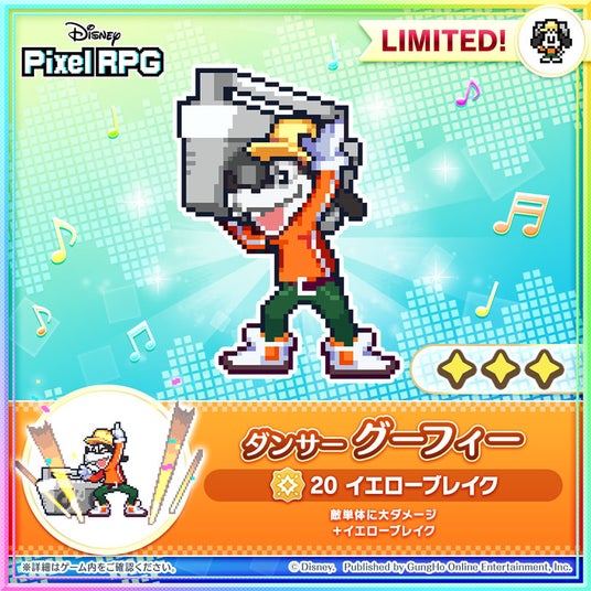 『ディズニー ピクセルRPG』では、新キャラクター「ダンサー グーフィー」の期間限定ガチャを2025年5月21日(水)より開催します。ゲーム内ですでに登場していた「グーフィー」とは異なる姿と能力を持った新キャラクターです。