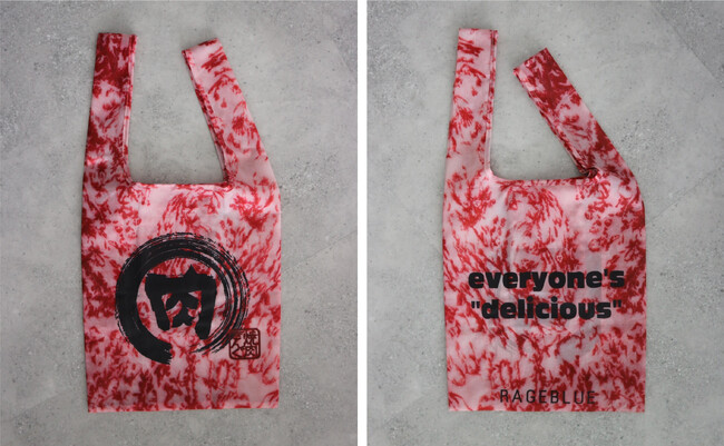 RAGEBLUE店舗でコラボTシャツをお買い上げいただいたお客さまに、数量限定の“肉柄エコバッグ”を先着順でプレゼントいたします。