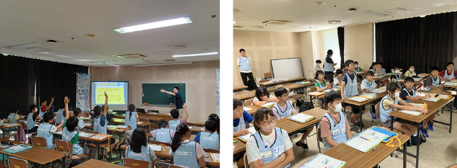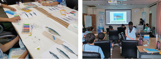 子どもたちは水温の変化が魚の生態系にどう影響するか等、積極的に挙手して考えを発表していました。