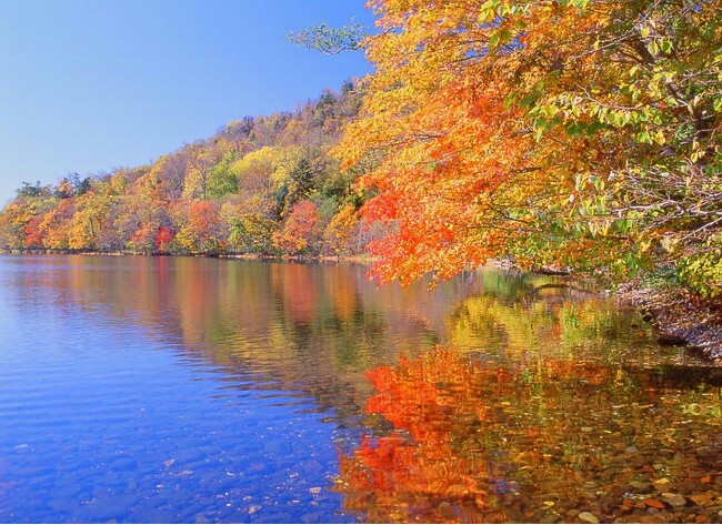 【紅葉時期の和琴半島と屈斜路湖】 屈斜路湖に突き出た和琴半島の秋の散策がおすすめです。