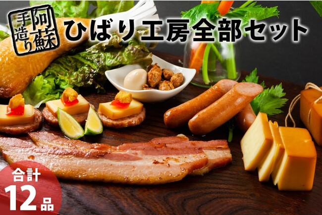 阿部牧場のASOMILIKやひばり工房のベーコンなど阿蘇の人気商品をセットに。