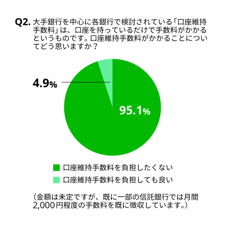 もし「口座維持手数料」が導入された場合、負担したくないと回答した人が約95%