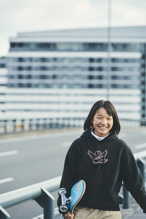 7歳でスケートボードを始め、競技開始からわずか8年で世界トップクラスに手をかける逸材。街中の手すりや障害物を模したコースで演技を行うストリート種目ではオリンピックメダリスト達と遜色なく、世界でトップクラスの実力を誇る。2022年に日本代表として参戦した国際連盟主催のPro Tourで表彰台に上がると、最も権威あるコンテストである「ストリートリーグ」(SLS)と「X Games」から改めて招待を受け、連続で表彰台に。SLSでは単一トリックに付く得点として女子史上最高・女子史上初の9点台(9.4点)を叩き出した。