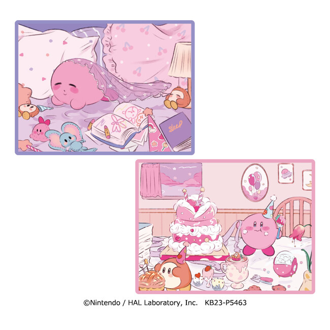 (左:アート、右:「Kirby×Dr.MORICKY BIGぬいぐるみ~Cake Party~」)