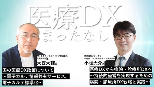 2025年度からの「電子カルテ情報共有サービス」の本格化を控え、医療現場は大きな変革期を迎えています。本セミナーでは、国の医療DX政策の全体像から、各医療機関の経営課題に応える具体的なDX戦略までを多角的に解説します。MICTコンサルティングの大西氏が国の最新動向を、メディヴァの小松氏が実践的なDX戦略を事例と共に紹介。医療DXの全体像を掴み、現場の生産性向上に繋がる情報が得られる絶好の機会です。ぜひご参加ください。