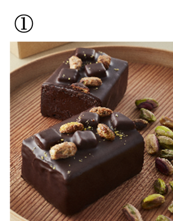 〈ル・ショコラ・アラン・デュカス〉1.フォンダンショコラ・ピスターシュ1本 3,996円 2.シュトーレン1本 3,780円 3.マカロン ショコラ3個入り(インド・ホンジュラス・エクアドル)3個入 2,592円/1階MAP1.