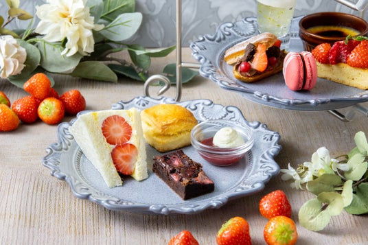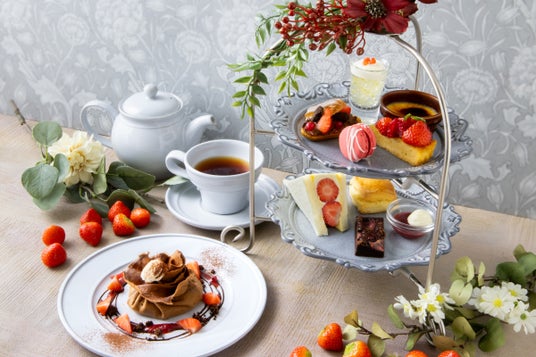 ほどよい甘さのショコラとフレッシュないちごのプティガトーで彩られたアフタヌーンティー。TOOTH TOOTHの紅茶とともに、素敵なティータイムを。