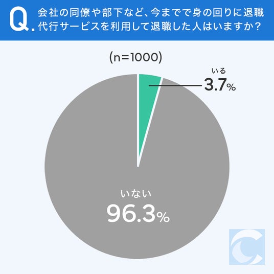 3.7%の方が、身の回りに退職代行サービスを利用して退職した人が「いる」と回答しています。