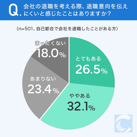 会社の退職を考える際、退職意向を伝えにくいと感じたことはあるか聞いてみました。