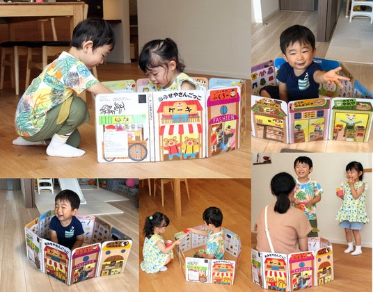 広げた絵本の中に入って物語を楽しんだ後に、絵本の中にもぐって遊べることが話題になり、
