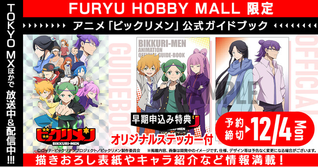 フリュー株式会社(本社:東京都渋谷区、代表取締役社長:三嶋隆、以下フリュー)は、アニメ「ビックリメン」について、本作初となる公式ガイドブックを発売することを決定いたしました。11月2日(木)より、フリューが運営するホビーECサイト『FURYU HOBBY MALL(フリューホビーモール)』(URL:https://furyu-hm.com)にて受注を開始いたします。